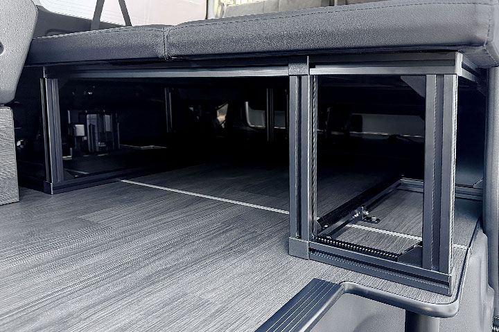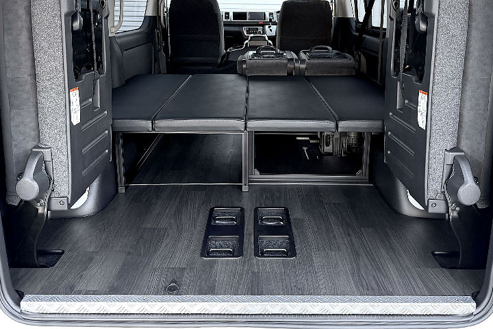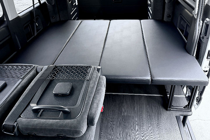 ●専用3分割フロアーボード&リア跳ね上げシートを残した専用ベッドキット。