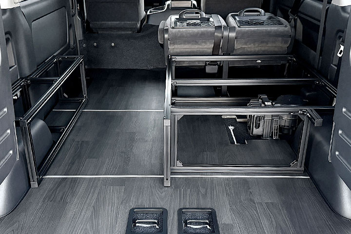 ●車検時に純正サードシートが元に戻せる様、フロアーボードをくり抜き加工済